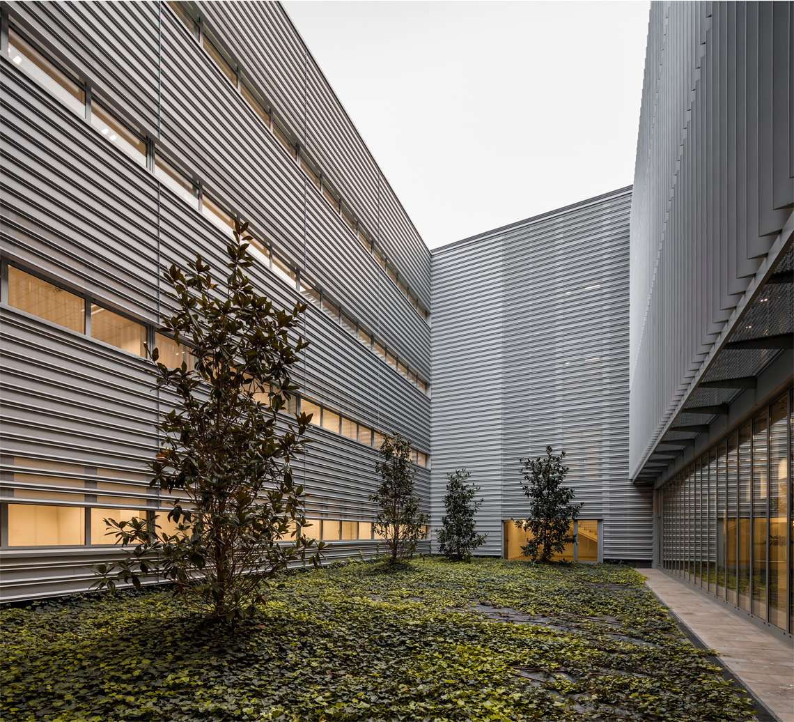 BELLATERRA, 2013 L’edifici de planta rectangular, s’organitza al voltant d’un pati i a cadascuna de les plantes trobem els despatxos, laboratoris i sales que completen els requeriments del programa. La seva ubicació dins els campus de Bellaterra permet tenir relacions amb d’altres departaments i facultats d’investigació presents a l’entorn. La façana es materialitza amb unes peces de xapa metàl·lica que permeten, allà on hi ha obertura mitjançant un sistema de micro-perforació, la il·luminació dels espais interiors.